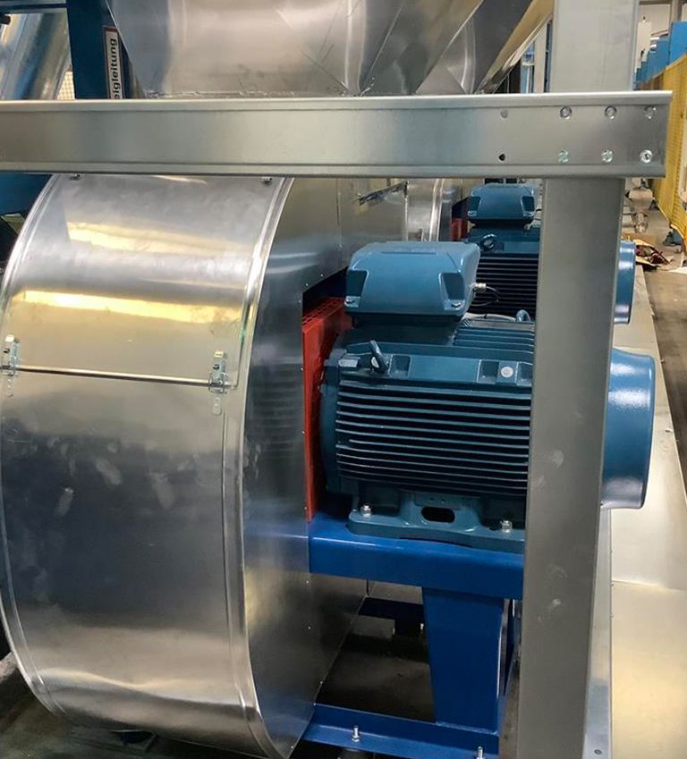 • Radialventilator mit Schalldämmisolierung, Lagertemperatur- u. Vibrationsüberwachung